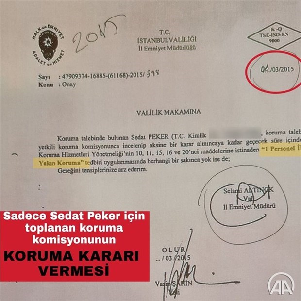 AA’nın paylaştığı koruma belgesini imzalayanlar arasında, bugün AK Parti Erzurum Milletvekili olan Selami Altınok’un adı da ‘İl Emniyet Müdürü’ sıfatıyla yer alıyor.