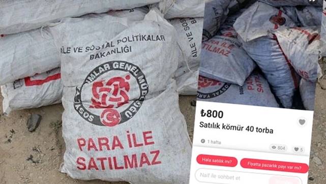 Uyanık satıcılar üzerinde ‘para ile satılamaz’ ibaresi ve Sosyal Yardımlaşma ve Dayanışma Vakfı’nın logosu bulunmasına rağmen, kömürlerin fotoğraflarını paylaşarak müşteri bulmaya çalışıyor.
