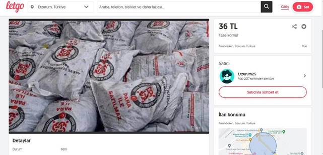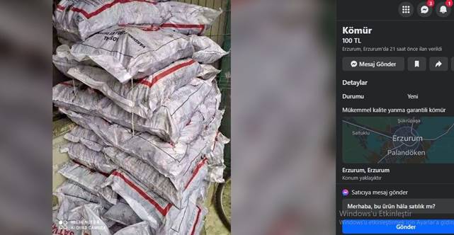 Erzurum’da merkez Yakutiye, Palandöken ve Aziziye ilçelerinde yaklaşık 10 bin haneye, yaz aylarında tonlarca yardım kömürü ulaştırıldı. Ancak bazı uyanıklar, sosyal yardım kömürlerini internette satmaya kalkıştı. Sosyal yardım kömürleri, özellikle ikinci el eşyaların satışının yapıldığı Facebook grupları üzerinden alıcı buluyor.
