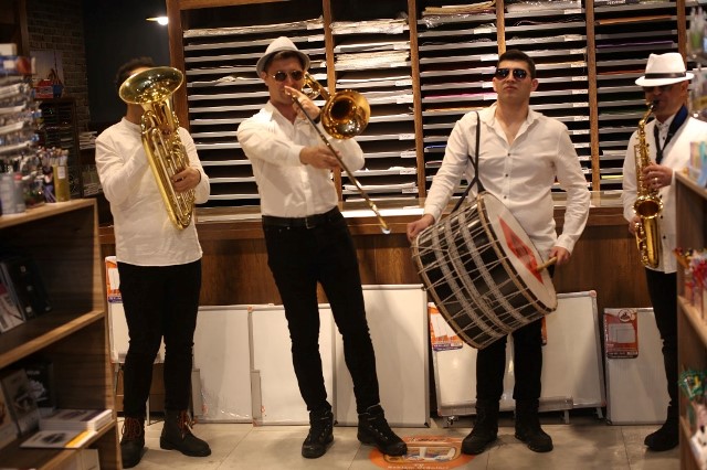Erzurum/zirve2000 Erzurum’da hizmet veren bir kırtasiyenin açılışında bando müzik ziyafeti çekti, askerler kıyafetli gençler hoşaf ikram etti.