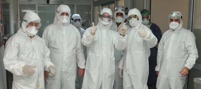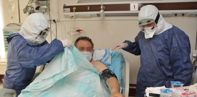 Yoğun bakım bölümünde şu an için 4 hasta tedavi görüyor. Hastaların her türlü ihtiyaçları görevliler tarafından karşılanıyor. Bu bölümlerin bulunduğu koridorlarda bile maskesiz, gözlüksüz, eldivensiz ve tulumsuz gezmek kesinlikle yasak. Doktoru, hemşiresi ve hasta bakıcısı güvenliğe azami dikkat ediyor. En küçük bir ihmalin sonuçlarının ağır olacağı bilinci ile hareket ediliyor.